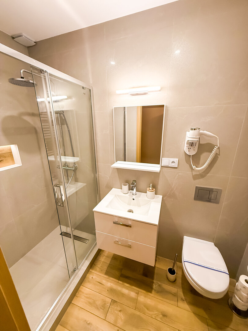 Komfortowy pokój 2 os z osobną łazienką i prysznicem. Wygodne podwójne, niedzielone łóżko małżeńskie. Możliwość dostawki hotelowej 1 os w cenie 50zł/doba, TV/ WIFI/ Komplet ręczników /Suszarka hotelowa/Lodówka hotelowa /stół jadalniany w pokoju / komplet szklanek